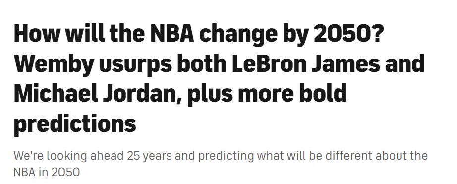 2050年NBA是啥样?美媒公布4项大胆预测:文班亚马超乔詹成为GOAT